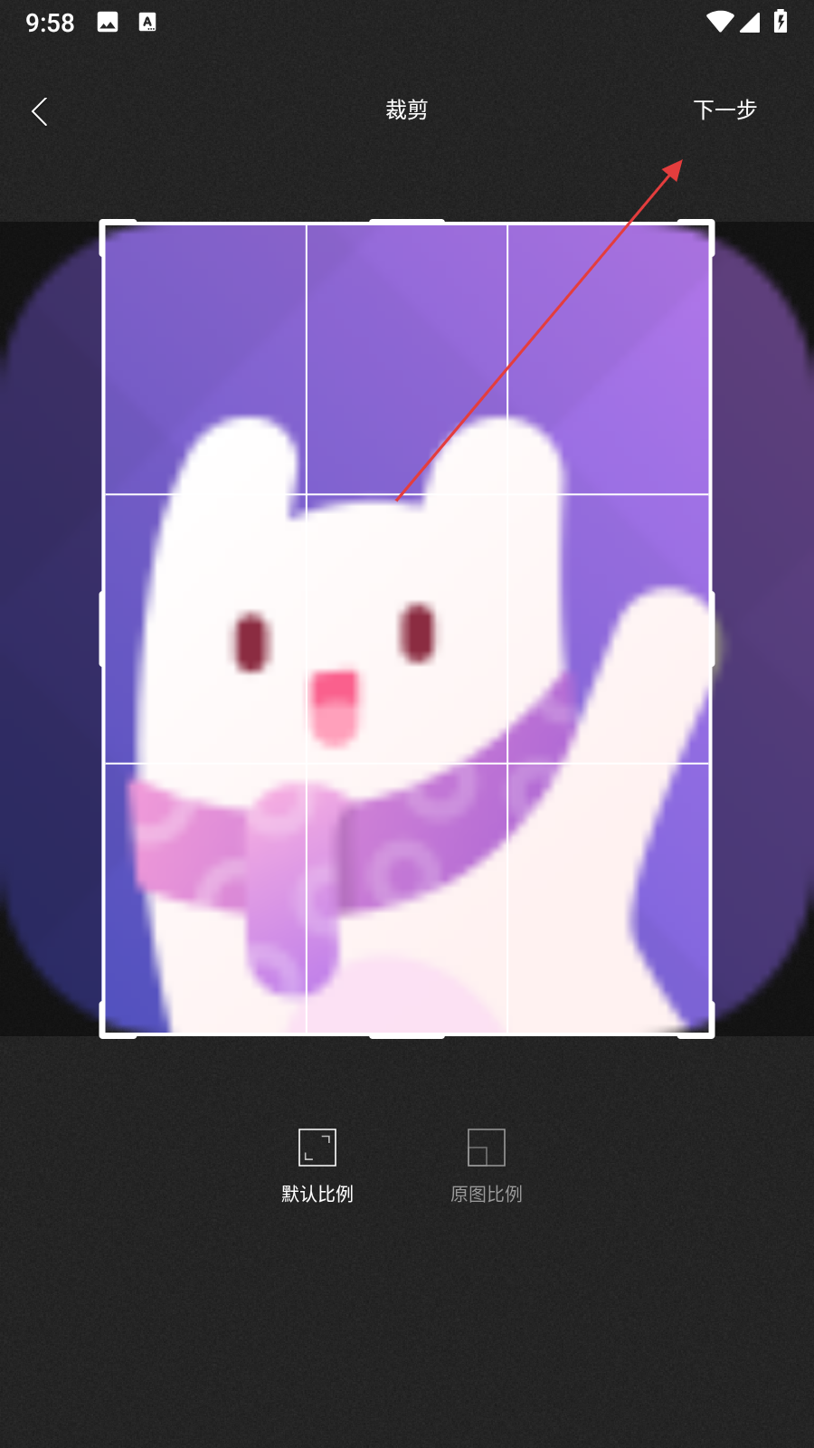 3、在圖片裁剪界面,可根據(jù)需要調(diào)整圖片的裁剪區(qū)域,調(diào)整完成后點擊右上角的下一步按鈕。