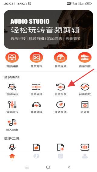 1、啟動魔音音樂軟件,進(jìn)入到首頁內(nèi),點擊音頻到倒放的按鈕。