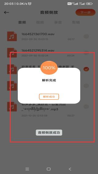 4、當(dāng)界面彈出解析完成、音頻倒放成功后表示已完成倒放。