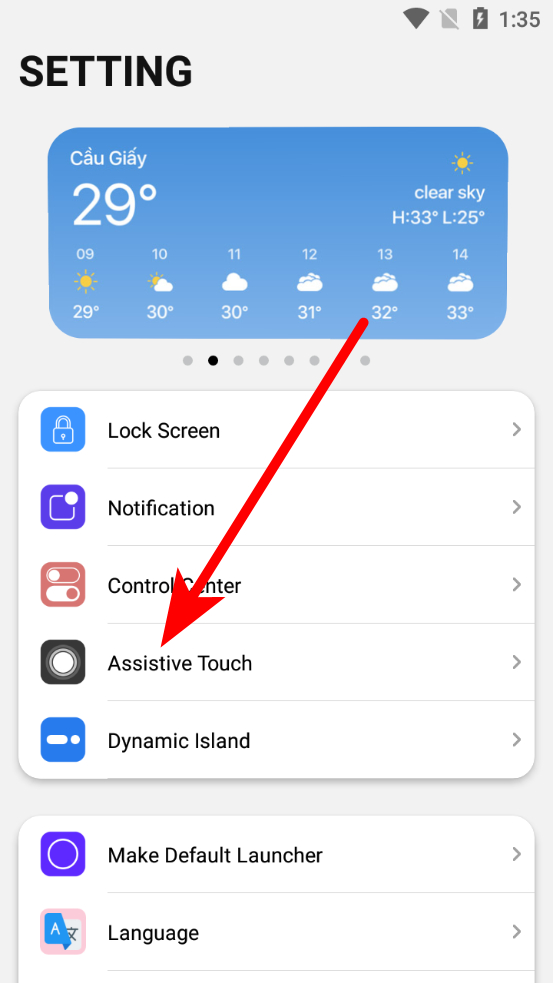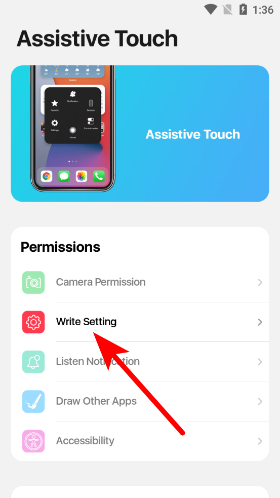 3、在Assistive Touch頁面,點擊Write Setting選項,進(jìn)入可修改系統(tǒng)設(shè)置界面。
