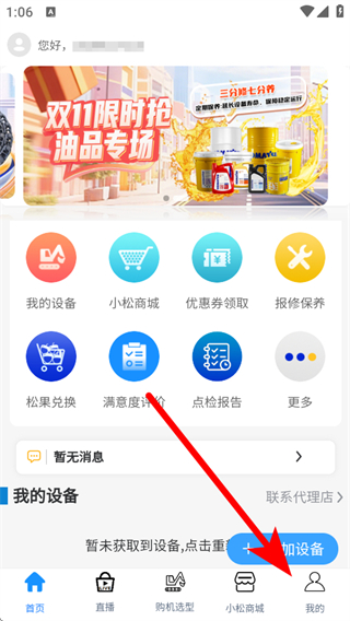 1、在我的小松的首頁,點(diǎn)擊底部我的按鈕,進(jìn)入個(gè)人功能頁面。