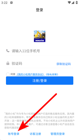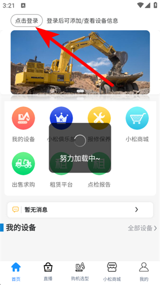 1、打開我的小松APP,點(diǎn)擊左上角點(diǎn)擊登錄,進(jìn)入登錄頁面。