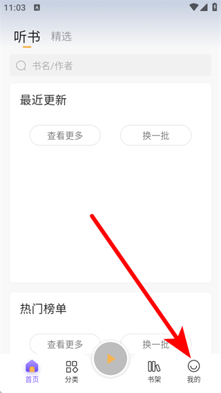 1、在云動聽書首頁,點擊右下角我的選項,進入個人界面。