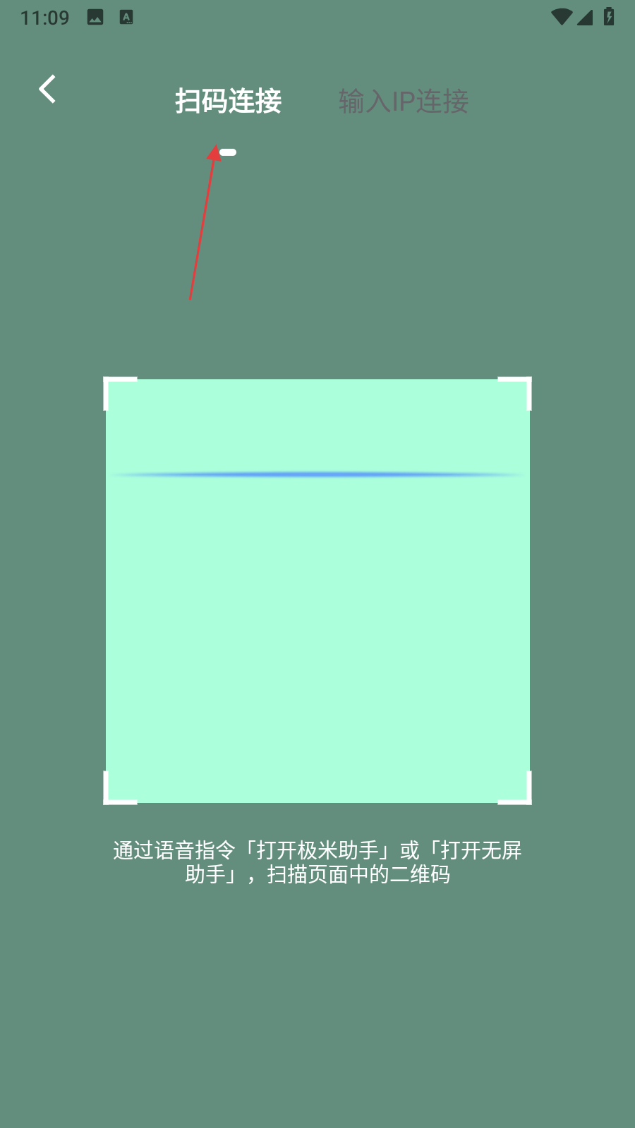 3、選擇掃碼連接,進(jìn)入掃碼連接頁(yè)面,掃描頁(yè)面中的二維碼進(jìn)行連接。