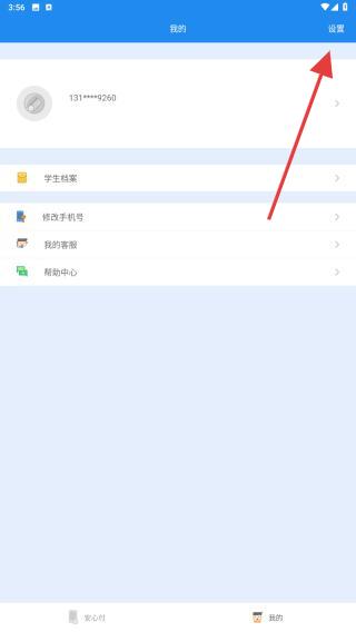 1、打開校園安心付APP,在首頁內(nèi)點擊右下角我的圖標(biāo)。