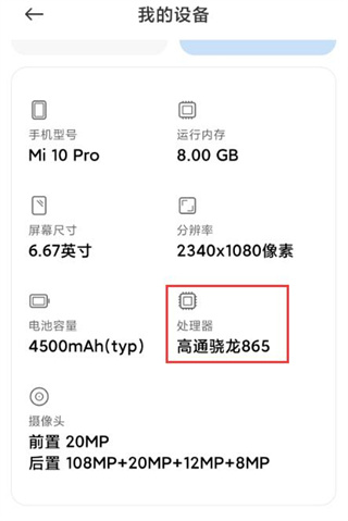 2、在設(shè)備信息中查看【處理器型號】是否為高通驍龍。