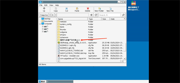 6.進入模擬器后找到D盤-植物大戰(zhàn)僵尸雜交版2.0文件夾,找到植物大戰(zhàn)尸雜交版v2.0安裝程序即可開始安裝