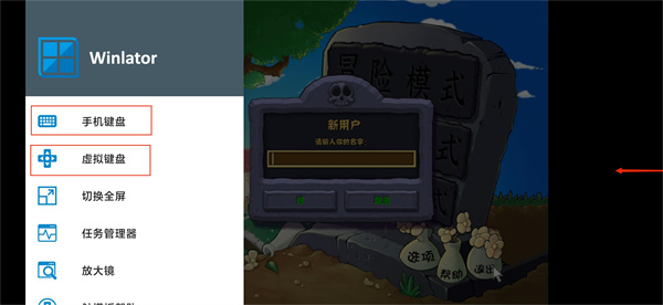 10.這時候用手指從屏幕最右邊往左劃動,就會有彈窗出來,選擇手機鍵盤或虛擬鍵盤,就可以取名字了