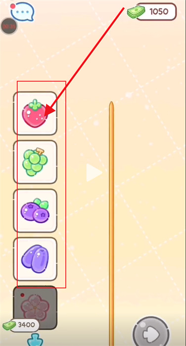 2、隨后會自動跳轉(zhuǎn)到選擇水果的頁面,將左側(cè)的水果都放在竹簽上,可以自由搭配;