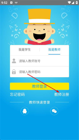 2、找到并點(diǎn)擊右下方的教師注冊(cè)按鈕,進(jìn)入注冊(cè)頁面。
