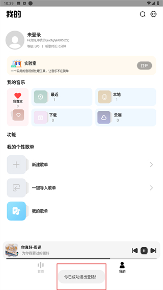 4、點(diǎn)擊后,界面會彈出已成功退出登陸的提示。