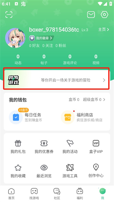 2、在個(gè)人界面中可以在上方看到【我的游戲】就可以進(jìn)入到個(gè)人玩過的游戲記錄頁面;