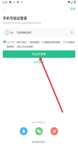 3、在跳轉(zhuǎn)到登錄頁面時(shí),可以填寫手機(jī)號(hào)點(diǎn)擊驗(yàn)證并登錄按鈕,進(jìn)行登錄。