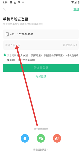 4、在獲取到驗(yàn)證碼后,點(diǎn)擊輸入框填寫驗(yàn)證碼再點(diǎn)擊驗(yàn)證登錄按鈕,完成登錄操作。