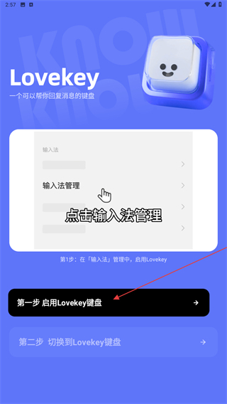 2、進(jìn)入到首頁內(nèi),點擊啟用Lovekey鍵盤的按鈕。