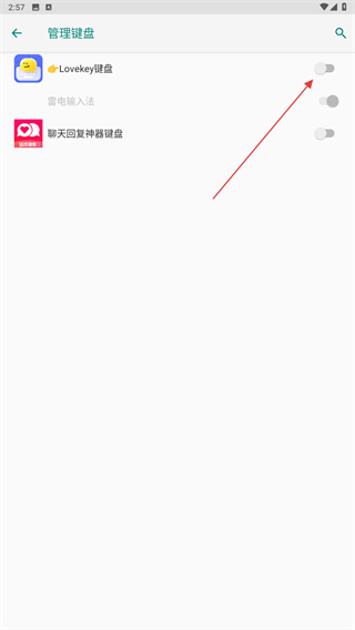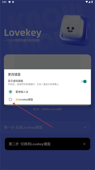 4、開啟后,會彈出更改鍵盤的提示,點擊切換Lovekey鍵盤即可。
