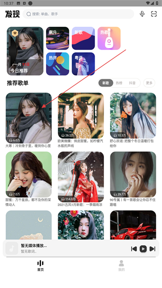1、打開奇酷星球音樂APP,進(jìn)入時(shí)點(diǎn)擊歌單封面。