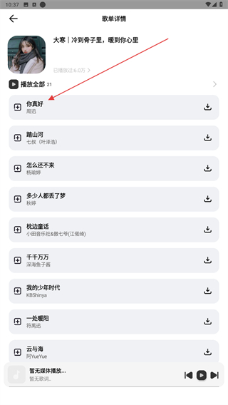 4、對(duì)于喜愛的歌曲一鍵下載或者保存,方便下次能夠繼續(xù)收聽喜愛歌曲;