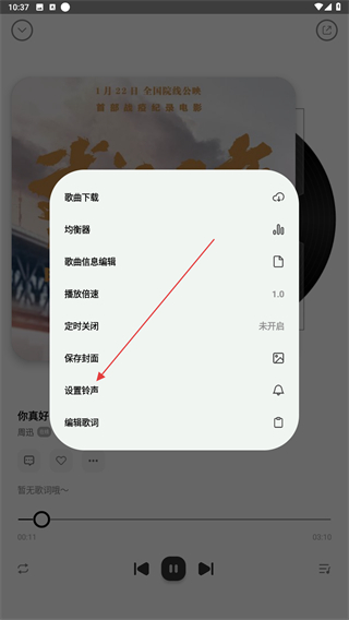 4、當(dāng)頁面彈出菜單欄時(shí),點(diǎn)擊設(shè)置鈴聲的按鈕即可。
