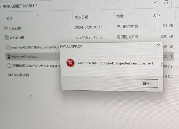 問題描述:雙擊啟動游戲后,彈出窗口Fatal Error,找不到resources.xml文件