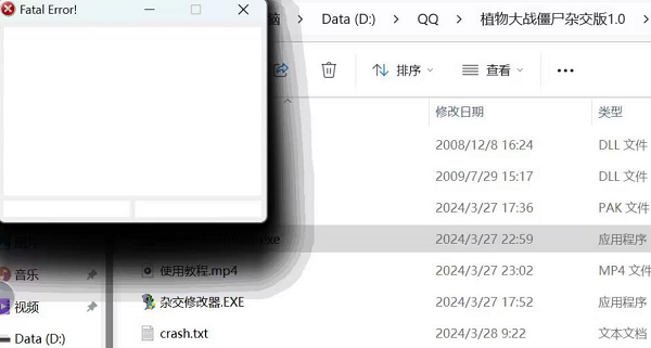 處理建議:群文件內查找【修復】Fatal Error報錯.reg文件,下載下來運行即可清除錯誤,出現(xiàn)此問題時,不建議開啟全屏游戲。