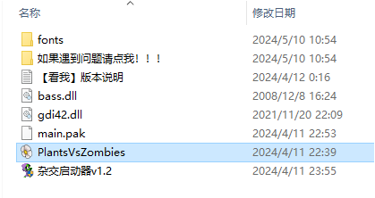 1、首先需要解壓縮包,然后在文件夾中點擊打開游戲本體【PlantsVsZombies】運行游戲程序;
