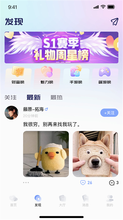 3、分享用戶們自己的個(gè)人動(dòng)態(tài)的信息內(nèi)容,可以發(fā)現(xiàn)到更多的精彩游戲內(nèi)容;