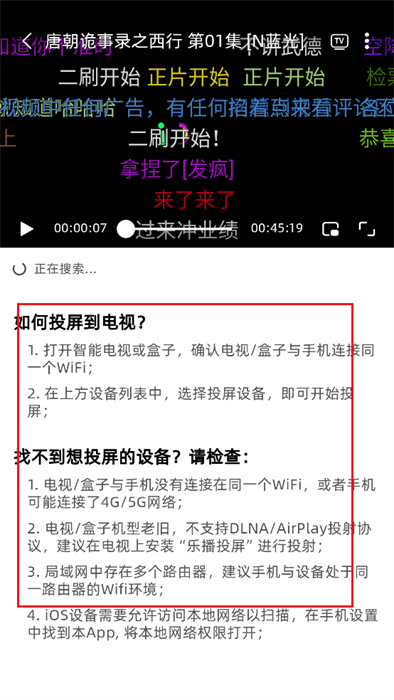4、最后,可以看到正在搜索設(shè)備的頁面,需要同時連接一個無線網(wǎng)才能順利投屏哦,快來嘗試吧!
