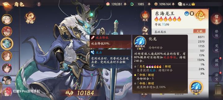 這里小白龍是核心輸出,命格解鎖50%反擊,三星解鎖雨刺,而其他都是為他服務(wù)的,算是極致四保一陣容,其中巨靈被動(dòng)分?jǐn)倐?,地藏減防,女兒國(guó)主加防加血,東海龍王抗揍,三星東海龍王解鎖反擊,小熊加肉盾。PS:三星龍王可替換成三星閻羅,這里看個(gè)人運(yùn)氣而定,配圖因?yàn)槲覜](méi)有東海和閻羅,所以用了托塔代替一下。