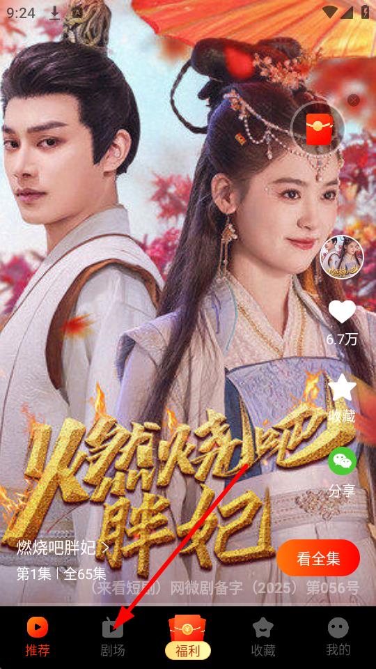 1、打開來看短劇應用,點擊底部導航欄中的劇場選項,進入劇集列表頁面。