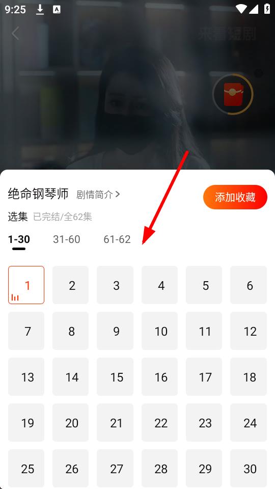 3、在短劇詳情頁中,根據劇集分集情況,點擊想要觀看的集數(shù),如點擊第1集。