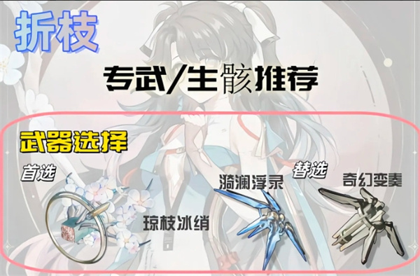 ①折枝武器:優(yōu)先專武瓊枝冰綃,次選漪瀾浮錄/奇幻變奏;