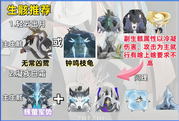 凝夜白霜(主生骸以輝螢軍勢為主,副生骸同理用套裝的且屬性為冷凝傷害和攻擊就行符合就可以上)