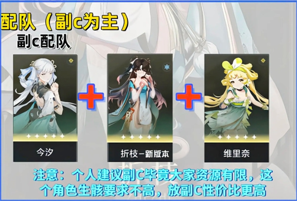 ④配隊(duì)推薦(副c為例):今汐+折枝+維里奈(白芷,下個版本的奶可能也能換上去);