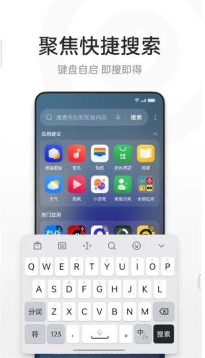 2、通過全局搜索只需要輸入關鍵詞的內容,就能同時搜索多個應用呈現(xiàn)結果;