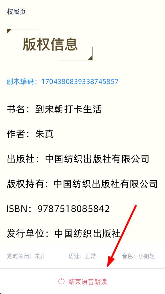 4、在聽書過程中,若想結(jié)束語音朗讀,點擊底部出現(xiàn)的結(jié)束語音朗讀選項即可。