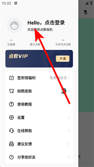 1、打開(kāi)點(diǎn)數(shù)相機(jī)APP,點(diǎn)擊左上角的菜單圖標(biāo)。