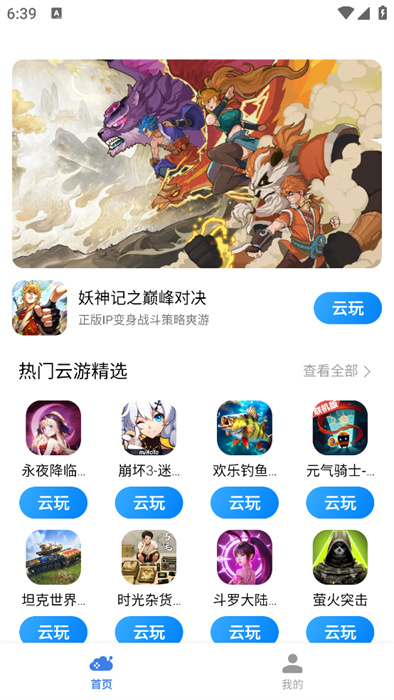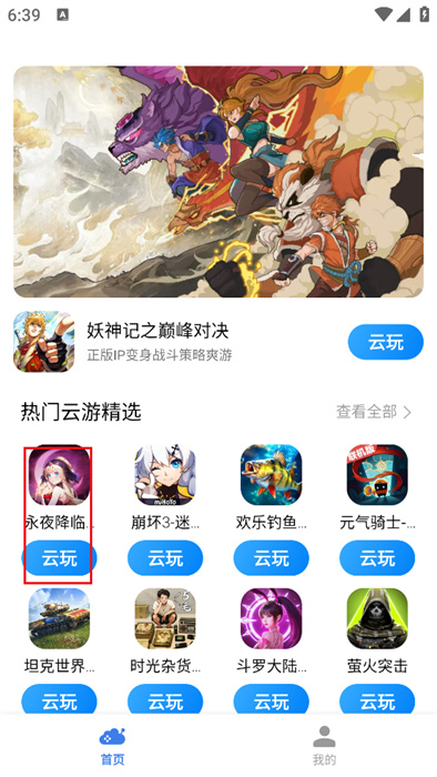 2、隨后,到首頁當中挑選自己感興趣的游戲,并點擊【云玩】按鈕會自動跳轉(zhuǎn)頁面;