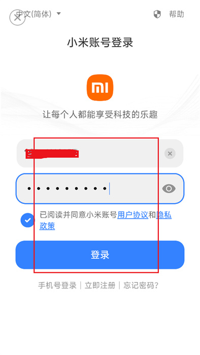 3、這個時候需要大家登錄自己的賬號密碼,你可以直接在這個頁面注冊小米的賬號并登錄;