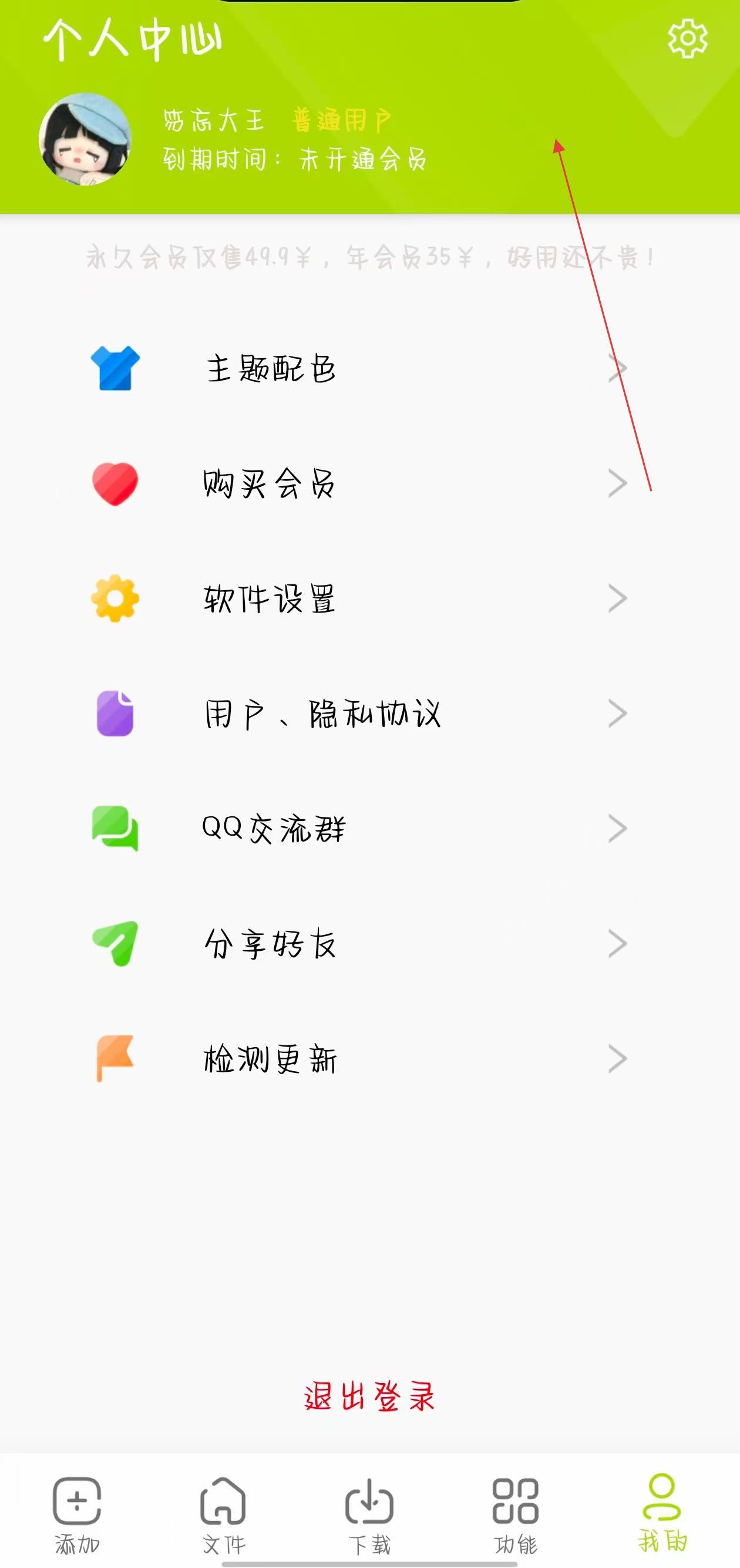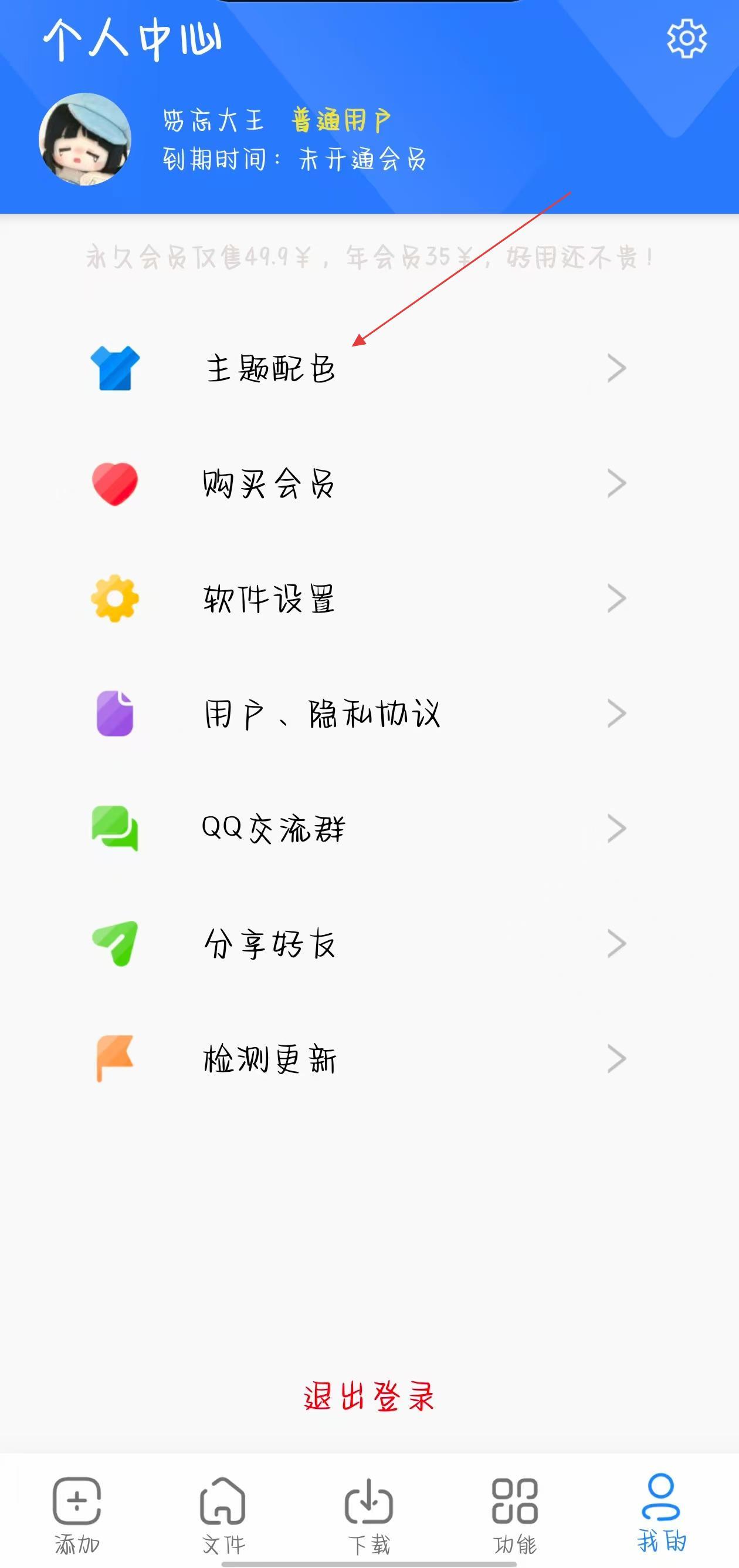 2、在個人中心頁面里,找到主題配色選項并點擊,進入主題選擇界面。