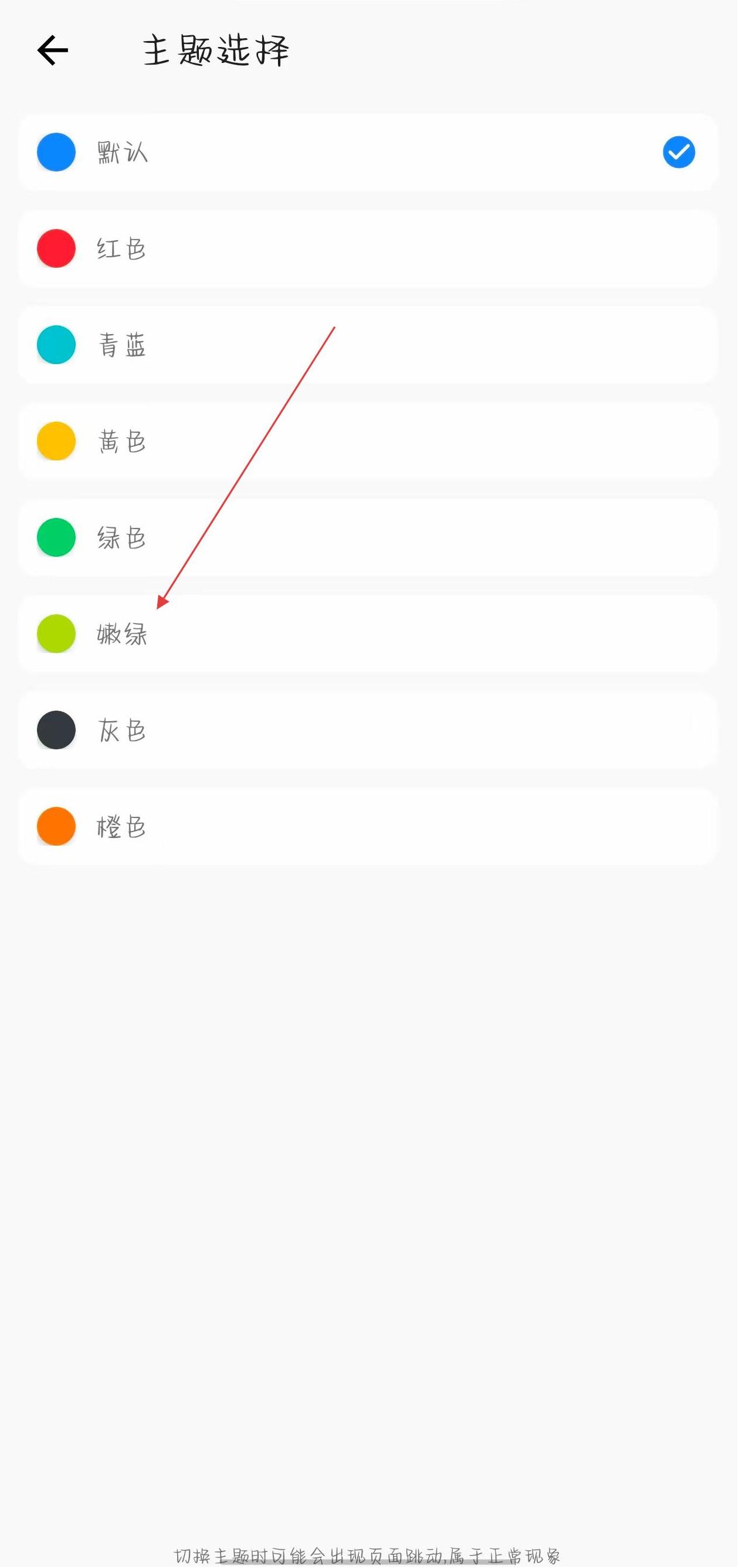 3、在主題選擇界面,能看到主題顏色選項,點擊想要更換的主題顏色。