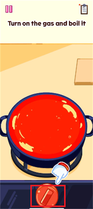 1、首先需要點(diǎn)擊屏幕之中的麻醬,并用麻醬將鍋底蓋??;