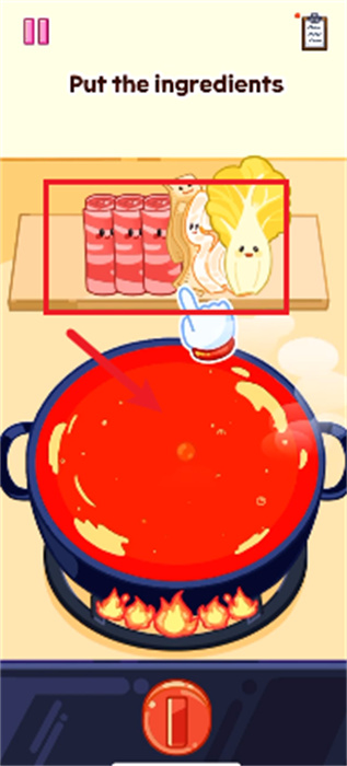 4、開啟火之后,玩家將需要往鍋中添加食材,直到全部的食材被放進(jìn)鍋中;