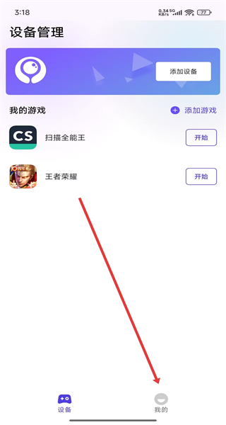 1、在設(shè)備管理界面點(diǎn)擊右下角“我的”,進(jìn)入個(gè)人頁面。