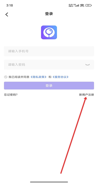 3、在登錄界面點(diǎn)擊“新用戶注冊(cè)”,進(jìn)入注冊(cè)頁面。