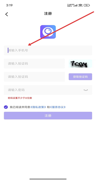 4、在注冊(cè)頁面依次輸入手機(jī)號(hào)、圖形驗(yàn)證碼、短信驗(yàn)證碼,設(shè)置密碼后,點(diǎn)擊“注冊(cè)”按鈕,完成賬號(hào)注冊(cè)。