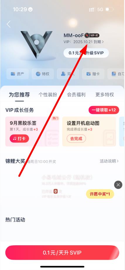 2、進(jìn)入我的頁(yè)面后,點(diǎn)擊個(gè)人頭像下方的會(huì)員標(biāo)識(shí)區(qū)域。