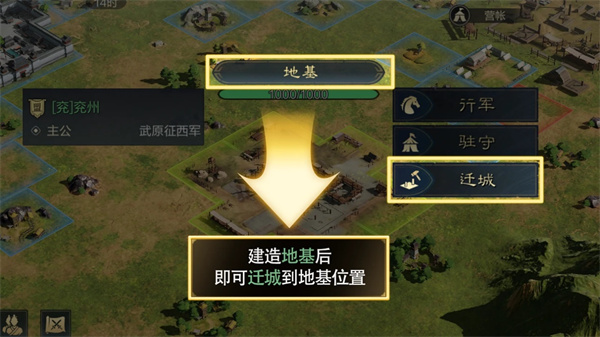 1、在攻打城池完成遷城之后,可以建立一個城池,把自己的勢力全部遷移到這個城池,獲得官員或者城主統(tǒng)一之后就可以建造基地;