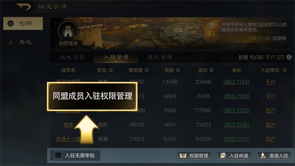 3、同盟成員可以管理居民入住,并且擁有撤銷城池封邑的管理權限;