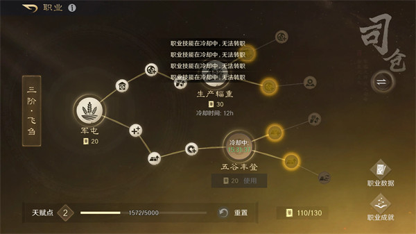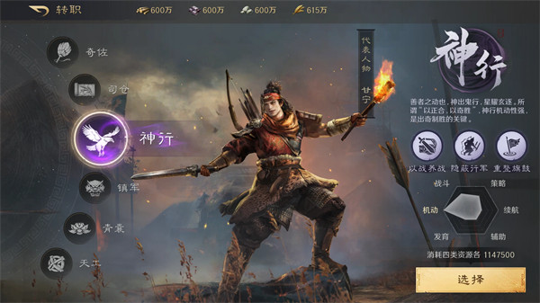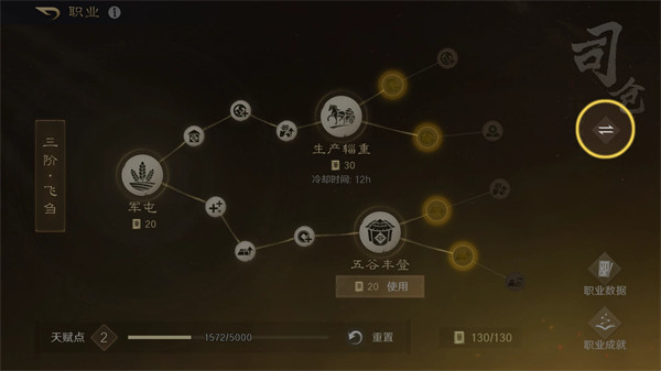 1、當(dāng)霸業(yè)階段【勢(shì)如破竹】解鎖時(shí),游戲會(huì)開啟新功能【轉(zhuǎn)職】,在職業(yè)界面的右側(cè),直接點(diǎn)擊置換標(biāo)志即可進(jìn)行轉(zhuǎn)職選擇;